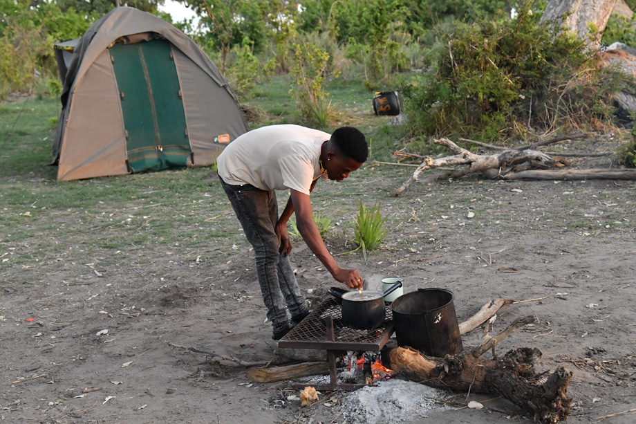 Die nächsten zwei Tage wohnten wir auf dem Eiland mitten im Okavango-Delta.