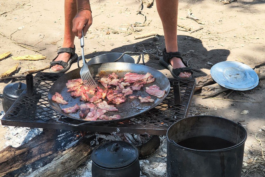 Gekocht wurde auf der mitgenommenen Gasflaschen oder über dem offenen Feuer, das die Poler auch nicht in der Nacht ausgehen ließen.